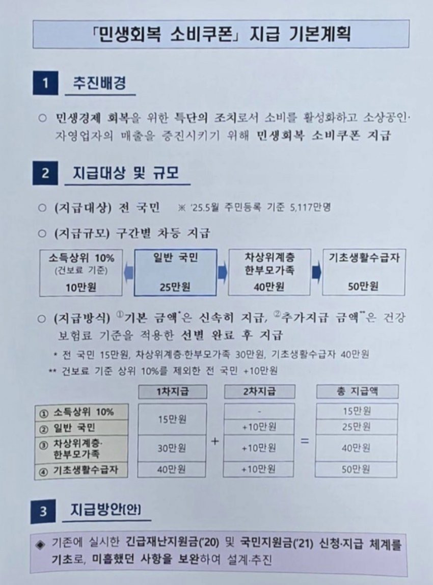 2025년 정부와 여당의 민생회복 전국민지원금 25만원 지급 총정리주식,부동산 투자 2025. 6. 16. 15:21