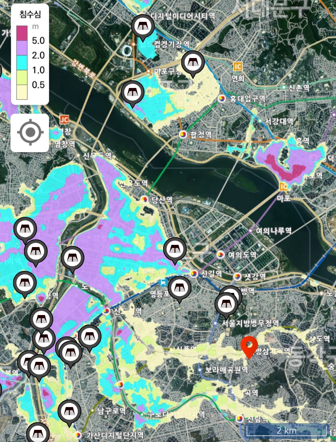 2. 침수 위험이 높은 서울, 경기 주요 지역
